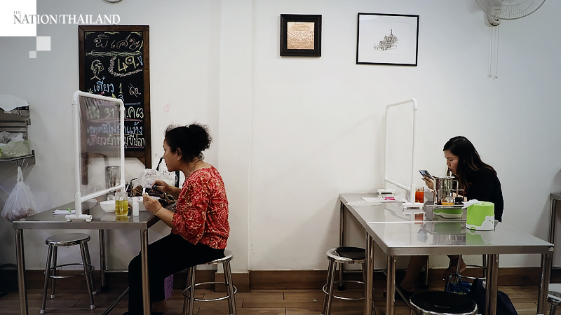 Cafes and restaurants are making special seats that have a plastic sheet to protect customers from being exposed to Covid-19.
