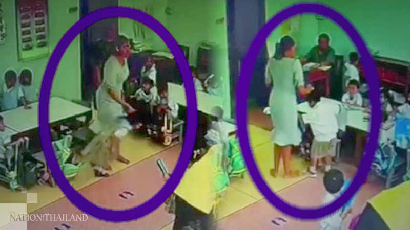The video showed the children being physically assaulted many times by a teacher, who was named as Onuma Ploadprong. The teacher reportedly banged the children's heads on their desks, pushed them to the ground, and twisted their ears until they screamed in pain.