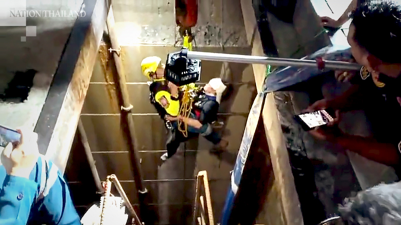Bang Phong Phang police, which were notified of the incident, immediately contacted a rescue team, which helped the man, who was miraculously still alive, out of the hole.