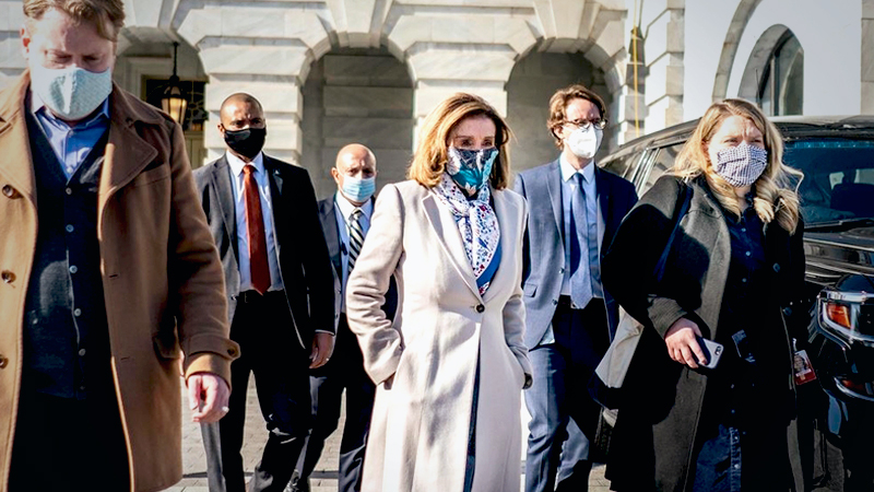 With some Democrats openly floating delaying transmission of the impeachment measure to allow the Senate to confirm at least some of Biden's Cabinet nominees, Pelosi on Wednesday did not respond to questions about her plans.