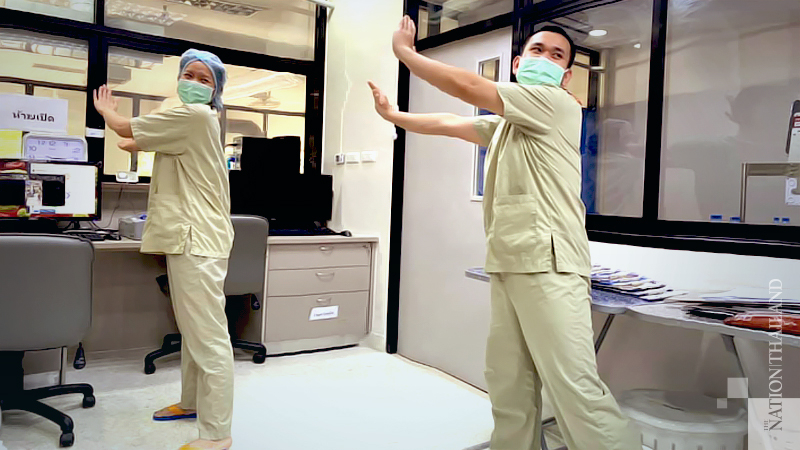However, doctors in Tak’s Mae Sot district have found a new way to “shake it off”. Mor Chai Dan or doctors in the border area shared a clip on Facebook showing doctors and nurses dancing. They said the dance workout, led by a Covid-19 Ward chief and a nurse, put them in a good mood and got rid of the stress.
