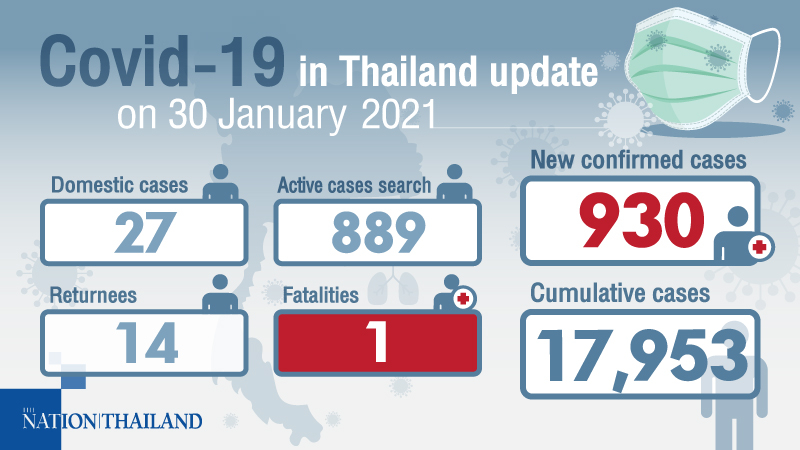 The Centre for Covid-19 Situation Administration (CCSA) reported 930 new cases on Saturday and the death of a Myanmar labourer in Samut Sakhon province.