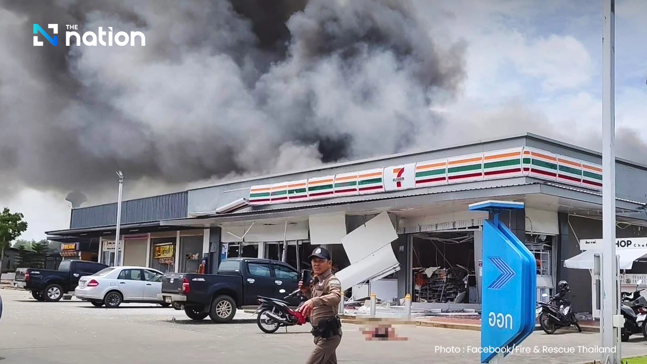 A shell landed at a petrol station in Si Sa Ket’s Kanthalak district, causing an explosion and fire that killed two civilians.