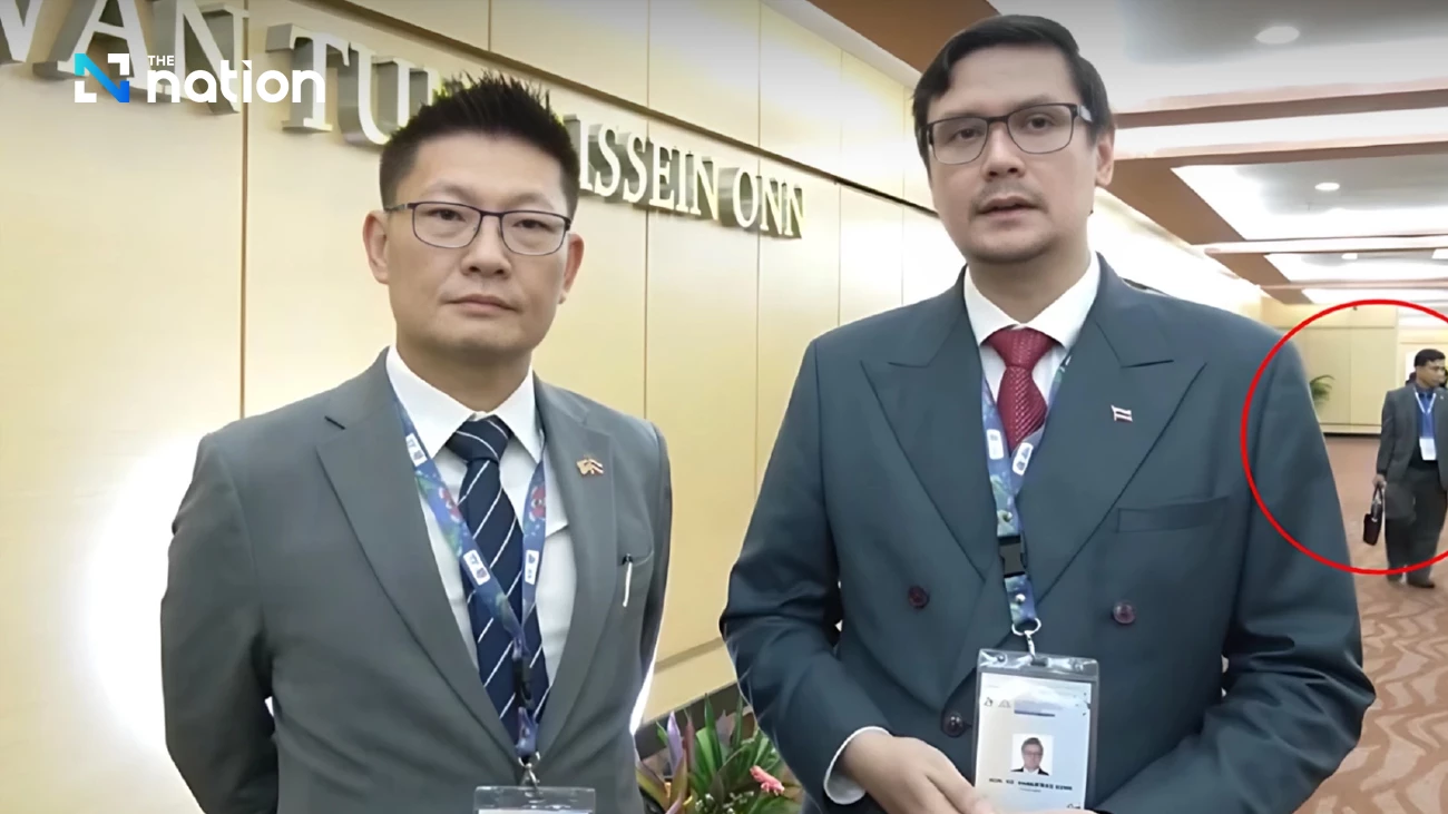 During Rangsiman’s interview, more than 10 members of the Cambodian delegation approached from behind, deliberately making noise by coughing, interrupting, and gathering in a cluster near the interview area. Despite these disruptions, Rangsiman completed his statement to the media without interruption.