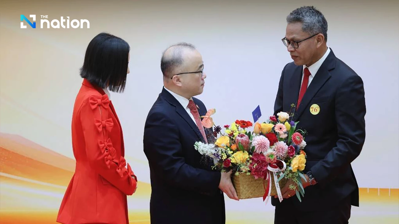 To mark the key anniversary, Baakbun presented a basket of flowers to Wu Zhiwu, Chargé d'Affaires of the Chinese Embassy in Bangkok, on behalf of Nation Group.