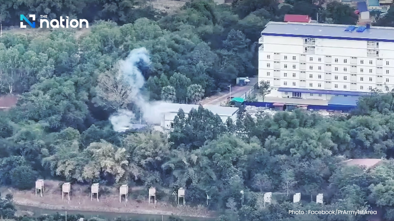 The Thai First Army Area has confirmed that the Burapha Task Force successfully destroyed two strategic buildings in Poipet, Cambodia, on Monday afternoon, after identifying them as active bases for sniper attacks and international scam operations.