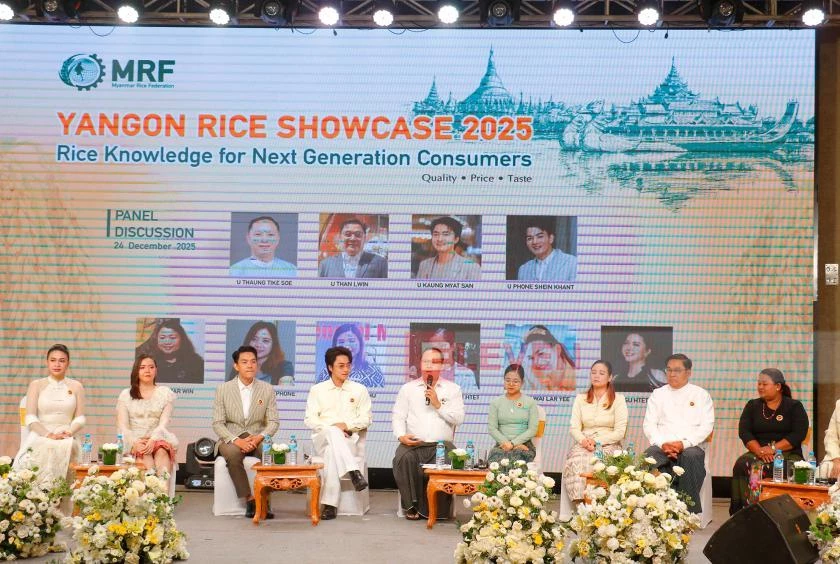 The forum was held on December 24 at the Melia Hotel in Yangon. It opened with a keynote address by MRF Chairman U Ye Min Aung and featured a panel discussion involving artists and rice traders.