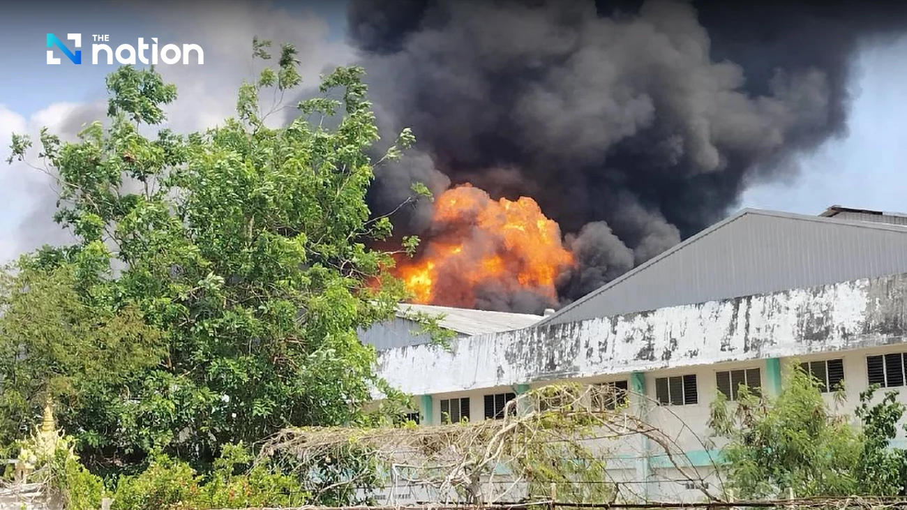 Police said the warehouse, located in Bang Butr subdistrict, had caught fire at 9am and as of press time, firefighters were still struggling to control the blaze.