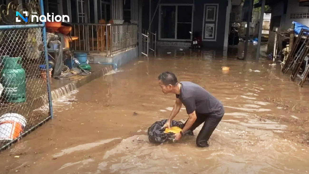 The storm also left Ban Tum village under flood water of about a metre high, forcing villagers and officials to dredge a canal that runs through the village to help drain the water.