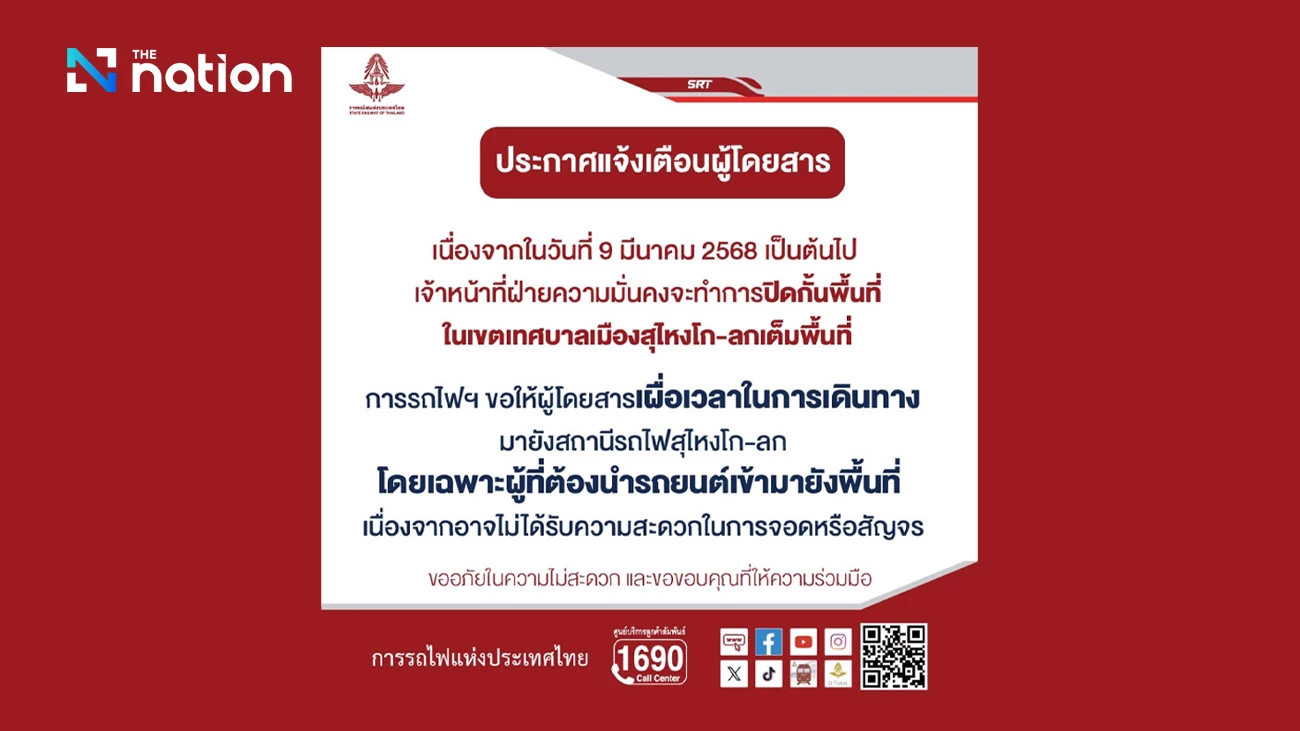 The State Railway of Thailand on Sunday issued a warning for passengers to arrive at Sungai Kolok railway station earlier, as heightened security measures in Narathiwat district may cause delays, potentially making them late for their trains.