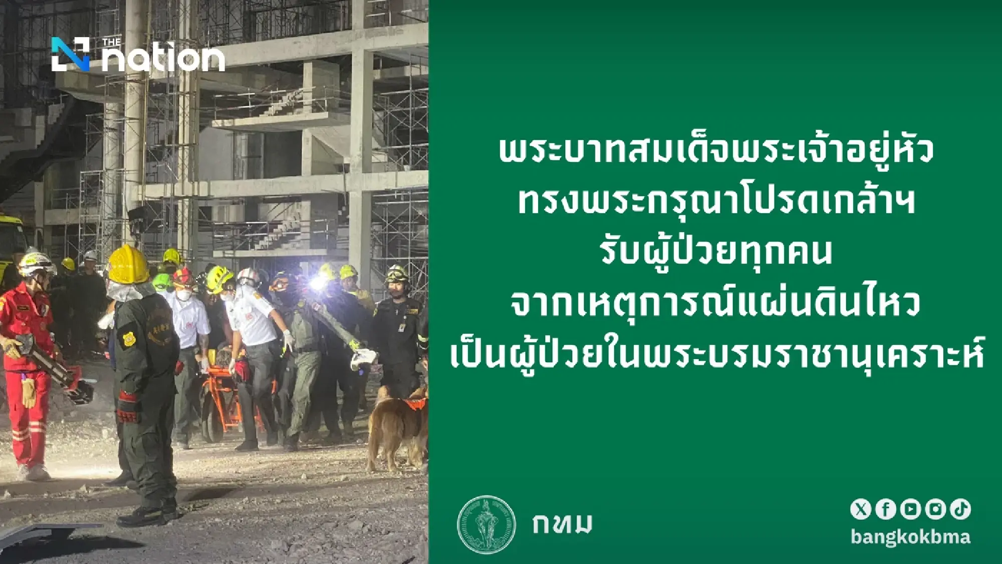 Their Majesties the King and Queen have taken the individuals injured by the impact of an earthquake, which was centered in Myanmar on Friday afternoon, under their royal patronage, Prime Minister Paetongtarn Shinawatra said in a Facebook post on Saturday.