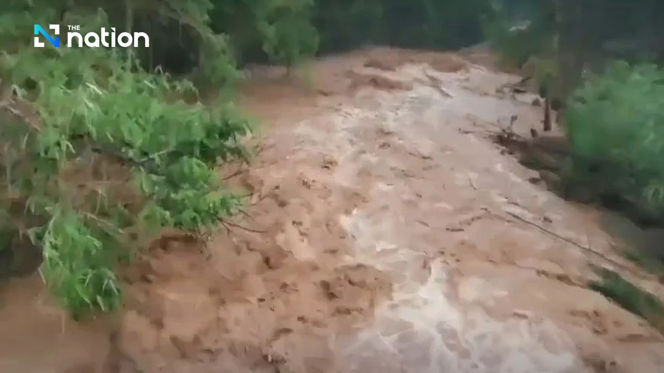 In particular, Ban Nong Samong Moo 15 was hit by a strong torrent of floodwater. A married couple riding a motorcycle attempted to cross a village road despite the rising waters but were swept into a canal by the current.