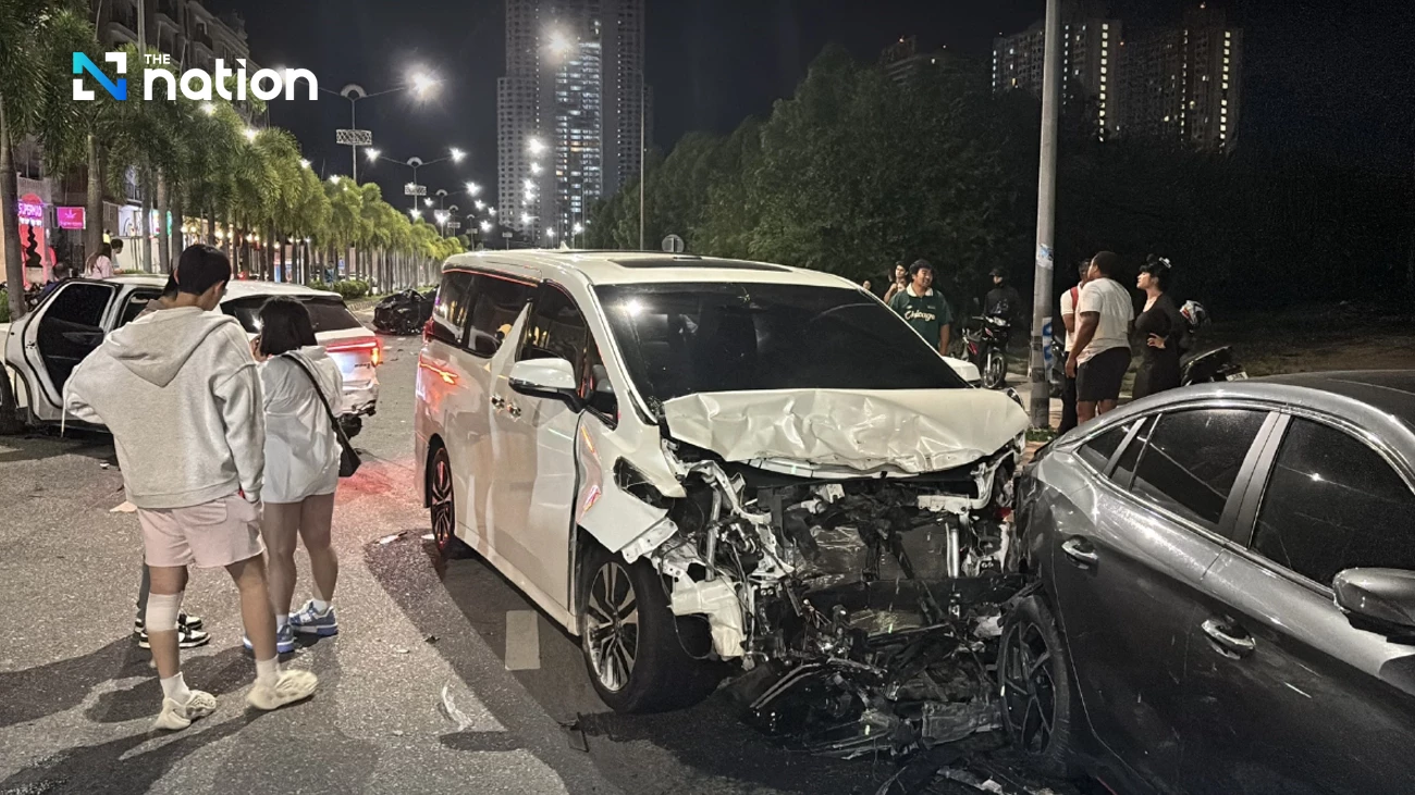 The tourist, Jun Sung, 25, was unhurt after his white Toyota Alphard collided with eight other vehicles on Jom Tien 2 Road in Pattaya City, Tambon Nong Prue, Chonburi’s Bang Lamung district, at around 11:36 p.m.