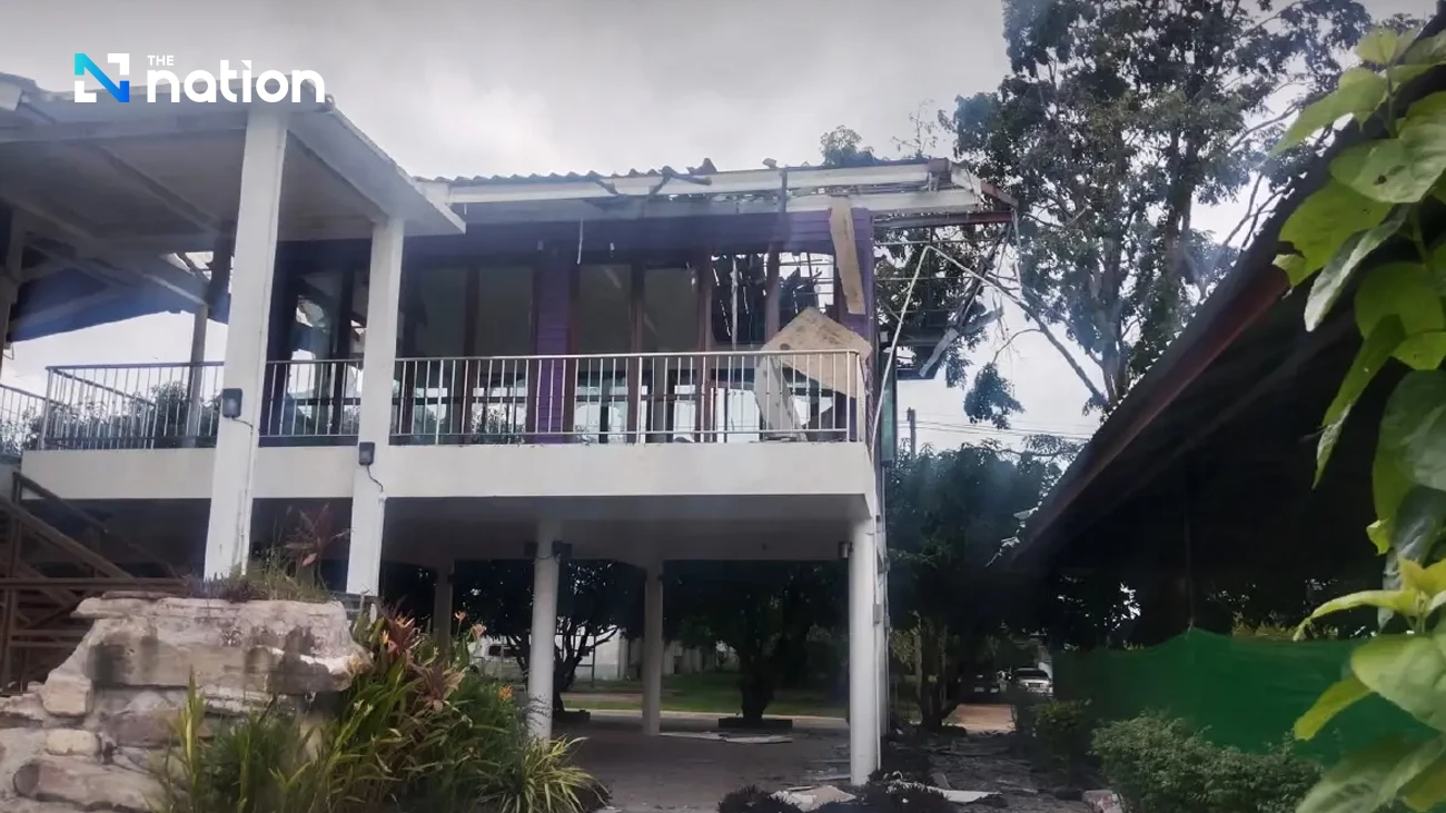 Thanakrit Jit-areerat, Secretary to the Minister of Public Health, posted images on Thursday showing extensive damage to Phanom Dongrak Chalerm Phrakiat 80th Anniversary Hospital in Phanom Dongrak District, Surin Province. The damage occurred after the hospital was targeted during a clash between Thai and Cambodian forces, resulting in casualties and the urgent evacuation of patients.