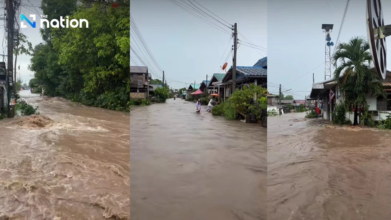 At 12:11 pm, a Loei resident using the Facebook account Nes Yeske posted video clips showing a road hit by a run-off. He said villages Moo 8, Moo 10, Moo 13, and Moo 17 in Tambon Nong Ya Plong were affected, with waters rising very quickly.