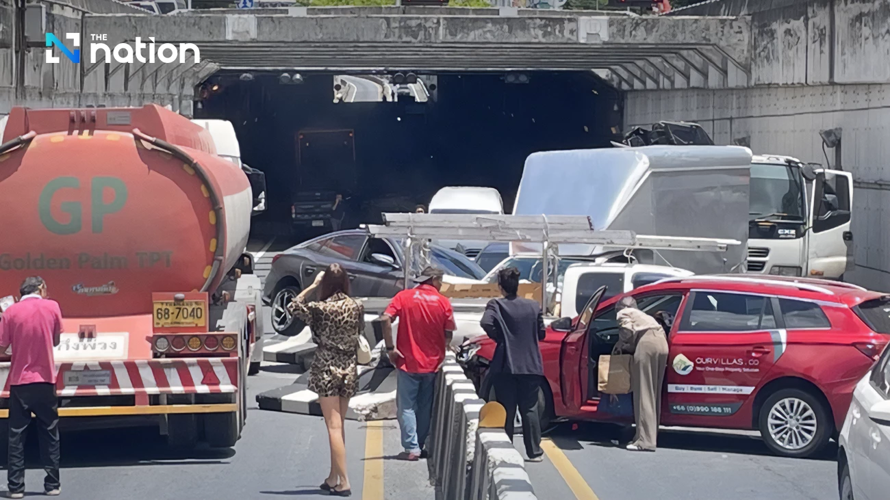 Police from Wichit Police Station rushed to the scene at noon and coordinated operations for over an hour to clear the damaged vehicles from the tunnel.
