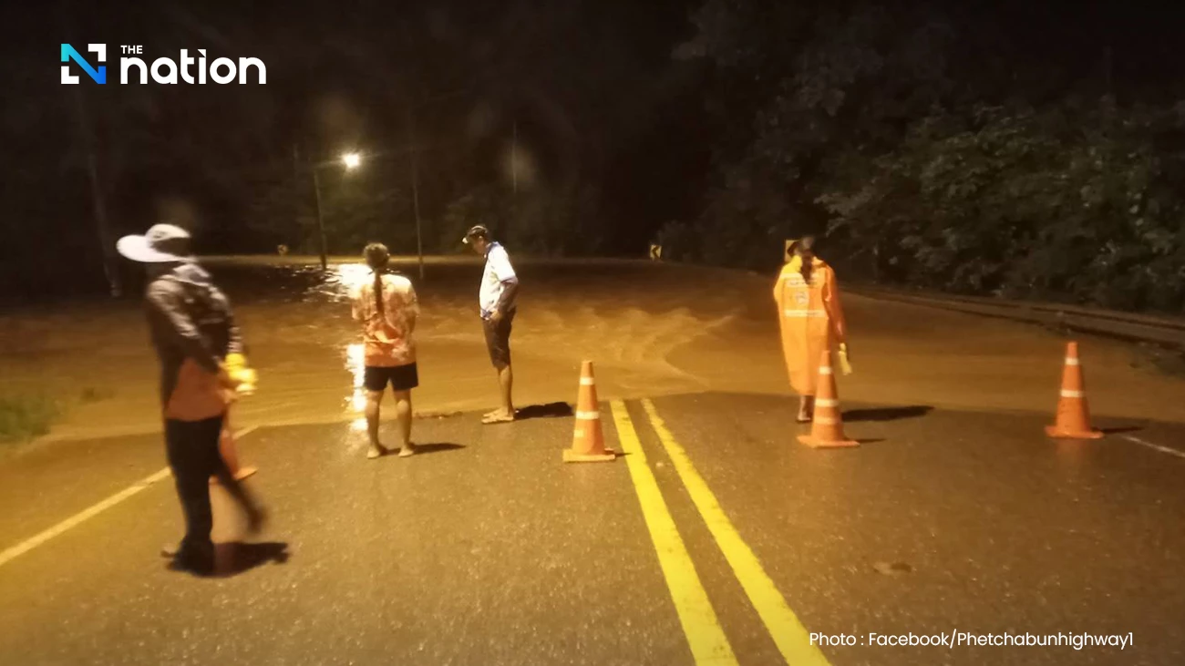 Highway No. 2216, between Khok Mon and Kok Kraton (km 80+465 to km 80+700), has been declared impassable to all vehicles. Officials from the Tat Kloi highway section have installed safety barriers, closed the route, and deployed staff to assist motorists.