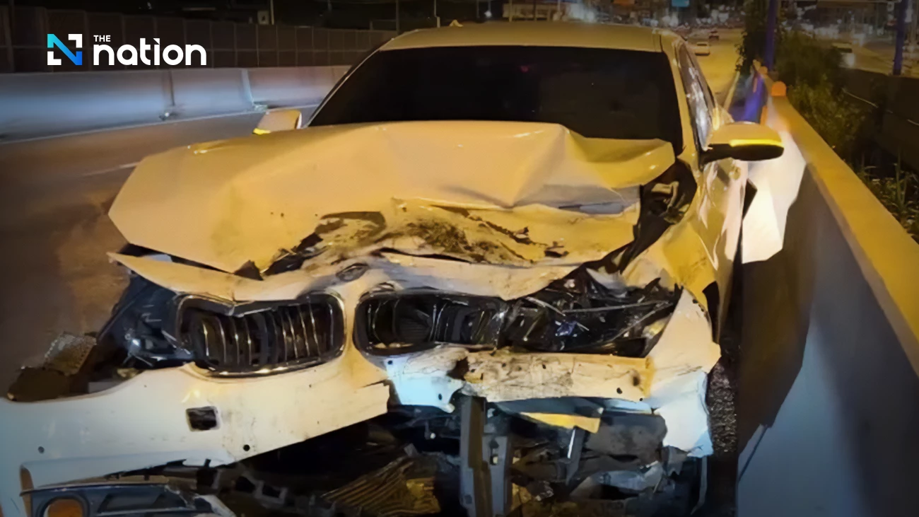 The driver, identified as Papassarin (surname withheld), 37, was found at the scene after her car collided head-on with a pickup truck on a bridge over the Bang Bua Thong canal. Her BMW had been travelling in the wrong direction in the middle lane.