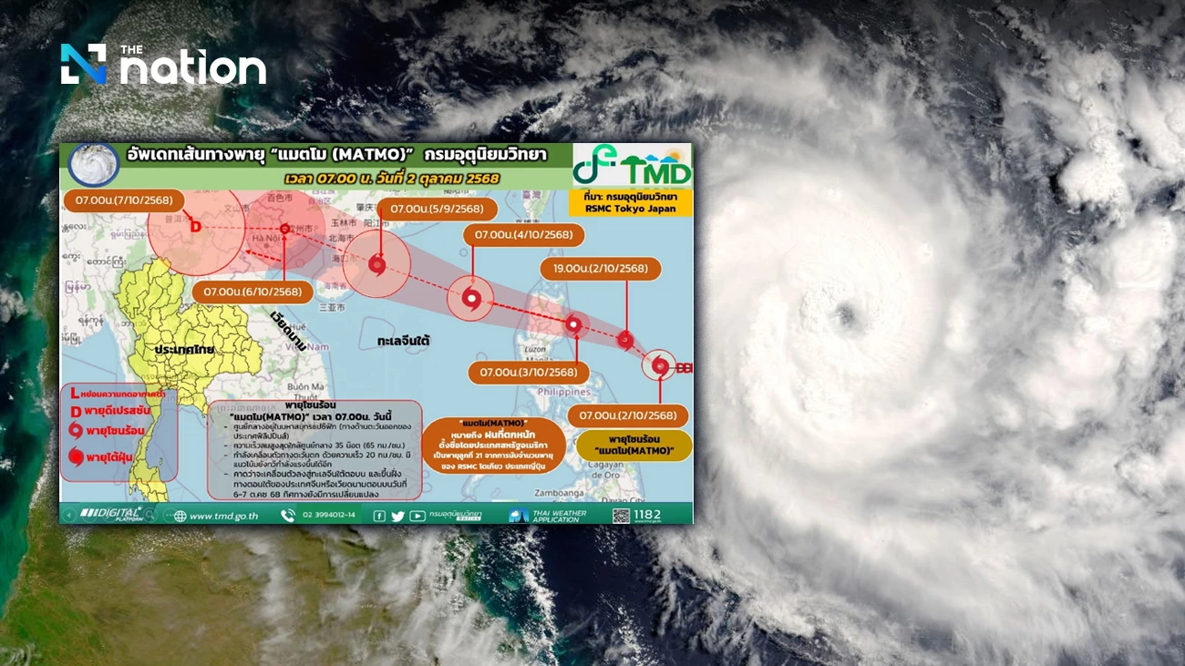 TMD confirmed that Matmo shows no signs of moving toward Thailand. The public is advised not to panic over current rumours and to follow official weather forecasts and announcements from the Department of Meteorology.