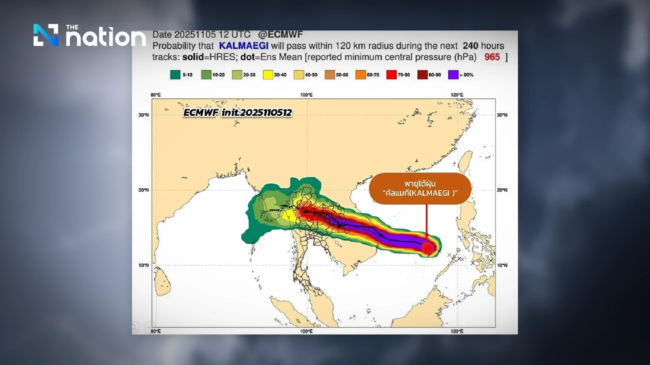 At a press briefing held at 10.30am on November 6 2025, Dr Sukanyanee Yawincharn, Director-General of the Meteorological Department, said that Kalmaegi is expected to make landfall in central Vietnam between November 6 and 7 before weakening into a tropical storm and depression as it moves through Laos into Ubon Ratchathani on November 7. The storm will increase rainfall across upper Thailand.
