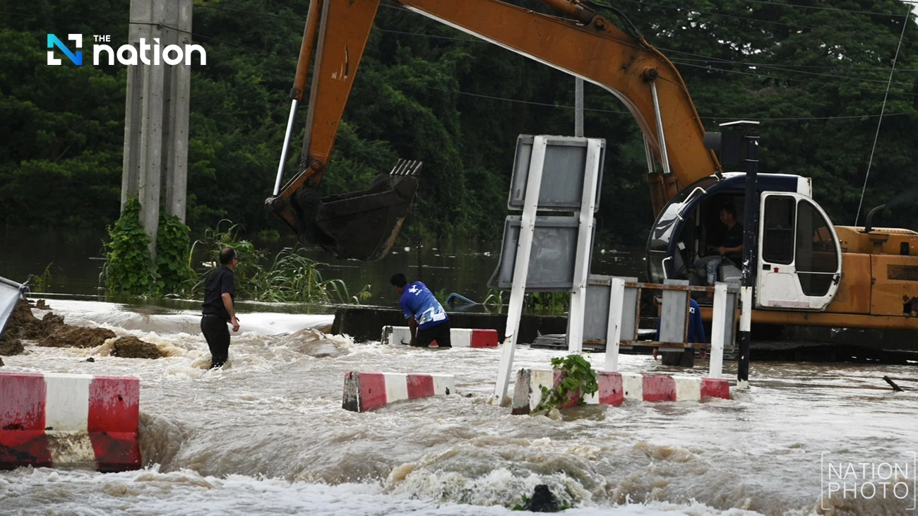 The flooding situation in Ang Thong province remains critical as officials continue efforts to fortify defences against the rising waters of the Chao Phraya River, which have breached several areas, including Pa Mok Market and local municipalities. The authorities are laying clay embankments in multiple locations to contain the water and prevent further flooding into homes.