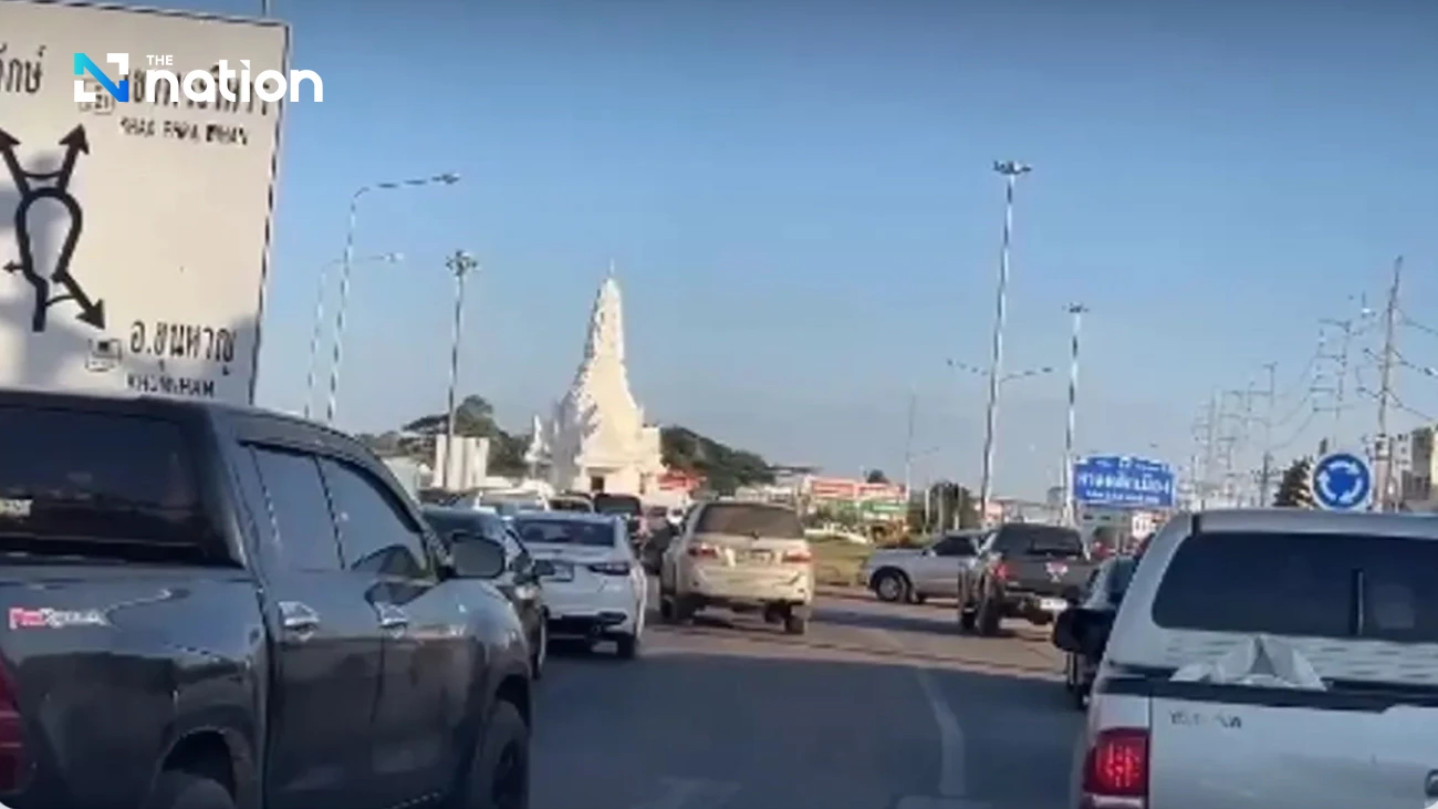 Traffic on the Det Udom–Nam Yuen road became heavily congested as vehicles streamed out of Nam Yuen district. Many cars and pick-up trucks were loaded with essential belongings and sacks of rice as families headed towards their chosen evacuation centres.