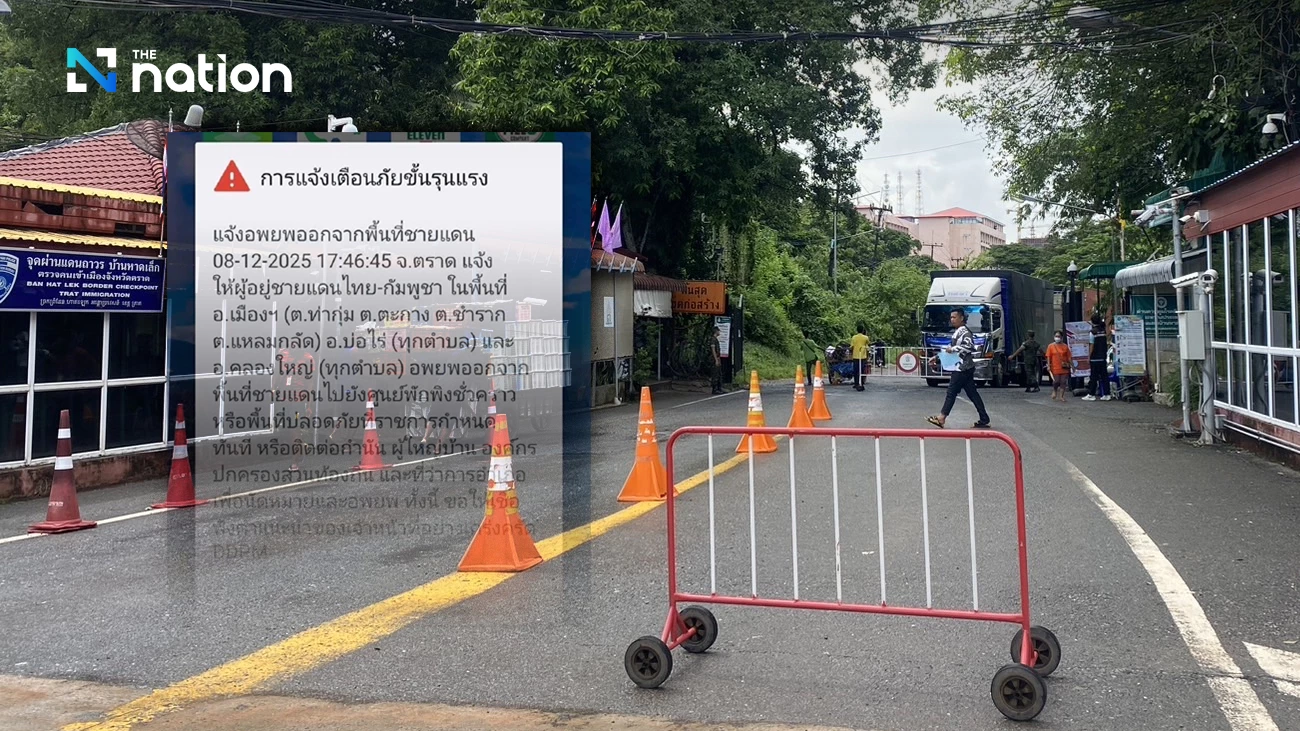 The Department of Disaster Prevention and Mitigation (DDPM) has sent SMS alerts urging residents in Thai–Cambodian border areas of Trat province to evacuate to designated safe zones.