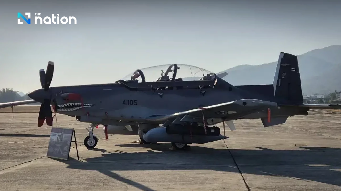 Based on photos widely published by news websites, the aircraft appears to bear tail number 41105 and the “shark mouth” livery, indicating it is a Beechcraft AT-6TH Wolverine light attack aircraft of the Royal Thai Air Force (RTAF).