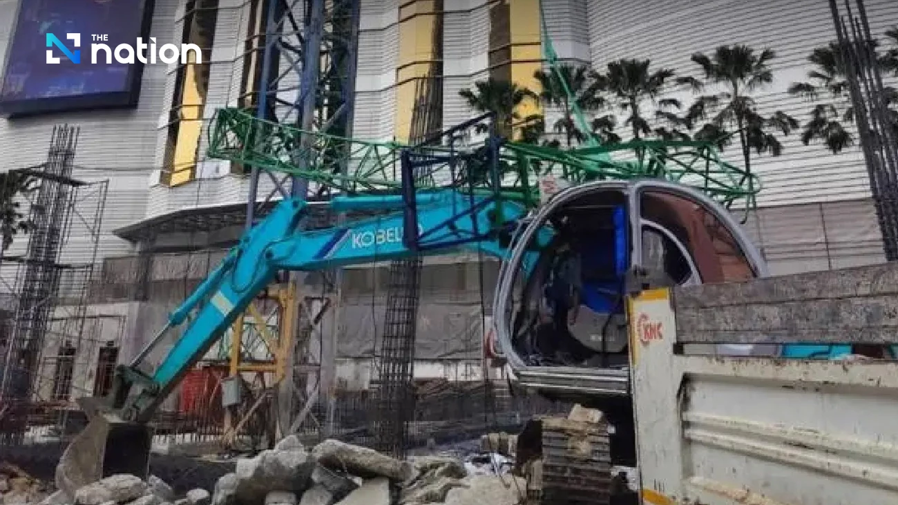 A tower crane arm collapsed onto workers near a shopping mall in the Asoke area, leaving two people injured, officials said.