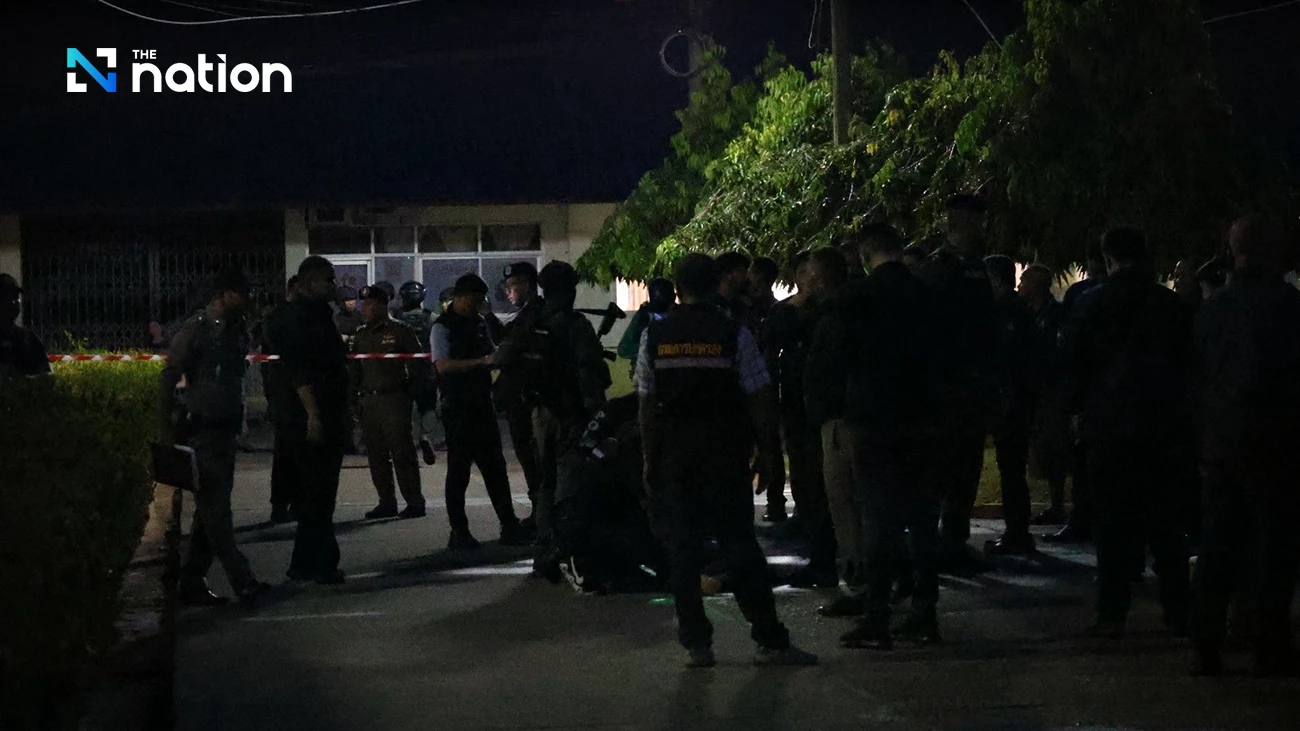 Police said they received an initial report at around 4.30pm on February 11 of a man behaving violently in the Ban Phru area. Officers attempted to contain the situation, but the suspect resisted. Police said the suspect later damaged a police vehicle, stole a 9mm handgun, and fled on a motorcycle before heading to the school.