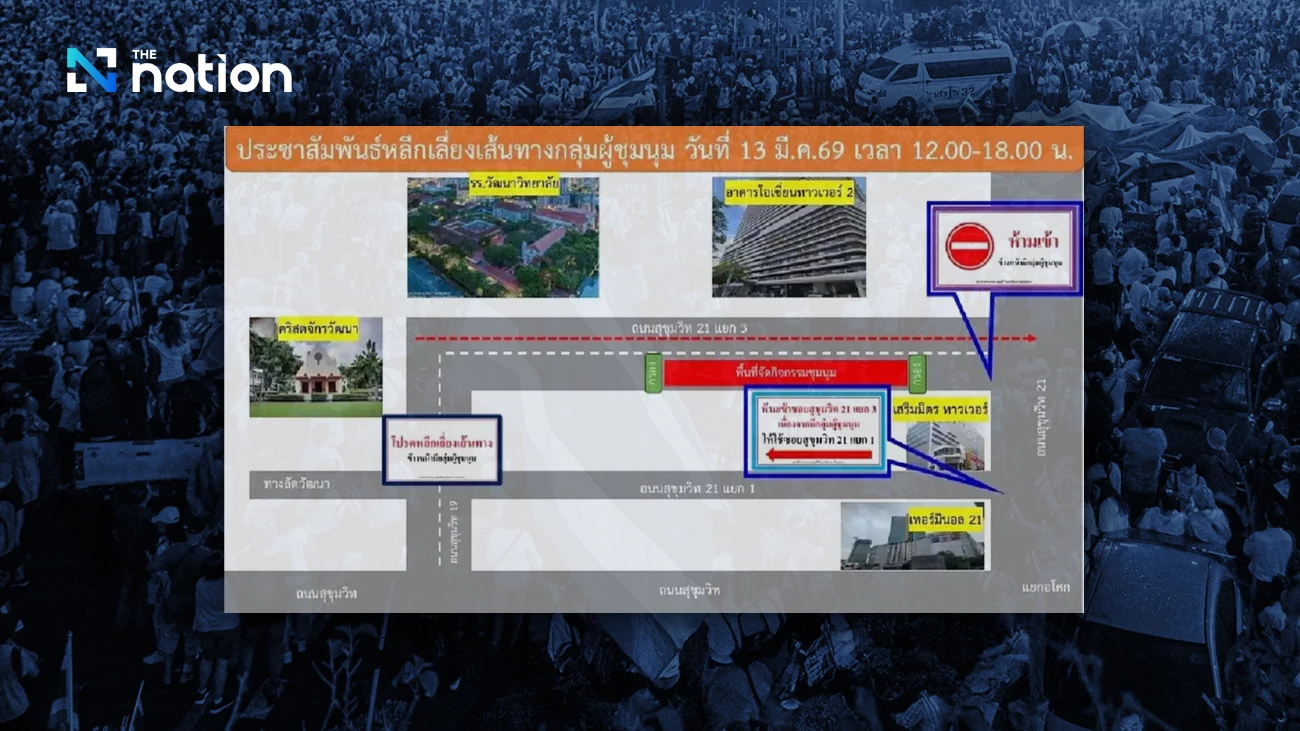 According to the advisory issued by Lumpini police, the gathering is expected to last for six hours, from 12pm to 6pm, a period that already coincides with heavy traffic in the area. As a result, roads around Asoke could face severe congestion.