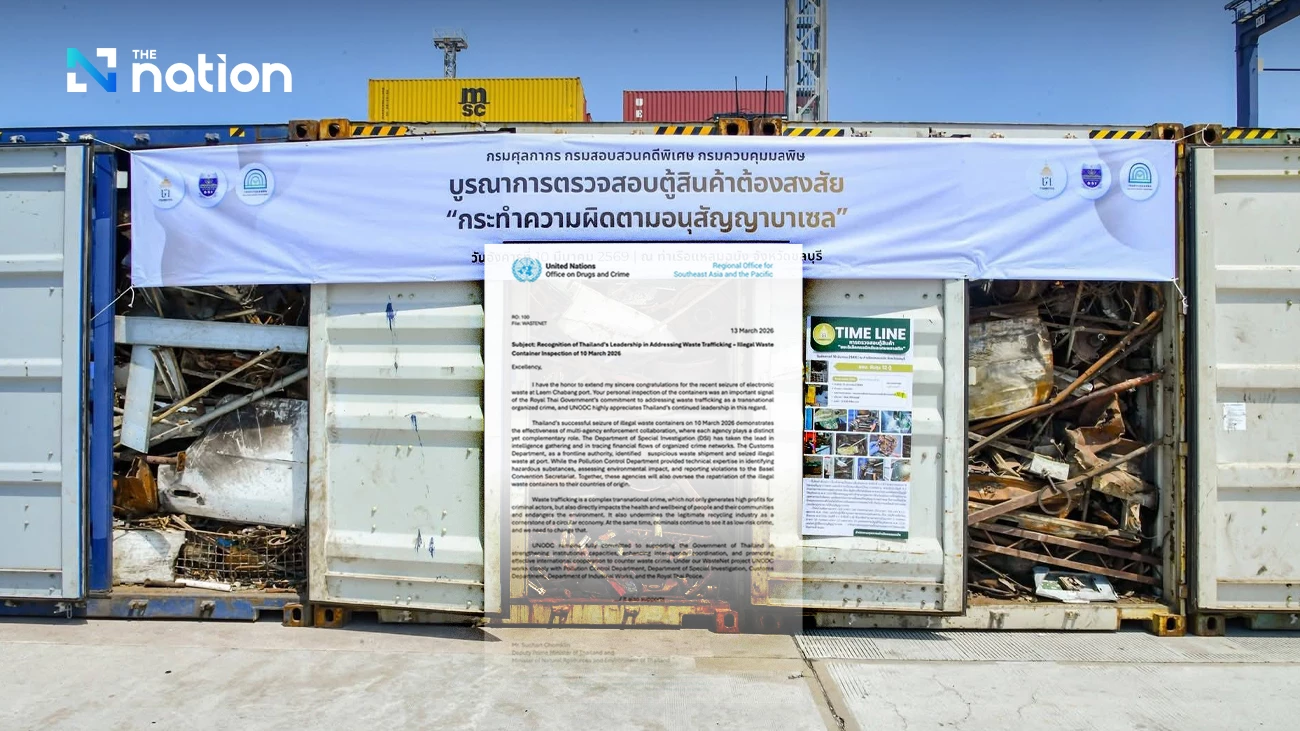 Thailand has received formal recognition from the United Nations Office on Drugs and Crime (UNODC) after authorities intercepted illegal electronic waste at Laem Chabang Port, in a case that underscores the country’s tougher stance on transnational environmental crime.