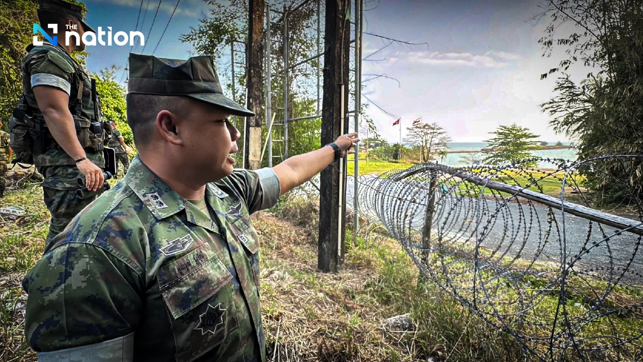 Lt Cmdr Khunvut Rungratsamee, commander of Marine Task Force 182, stressed that during the two Thai-Cambodian border clashes, there were no confrontations in the Ban Hat Lek area, but forces have remained on constant watch. He said Thai territory in this section is coastal, while the Cambodian side is a ridge area at higher elevation, meaning troops must operate with caution.