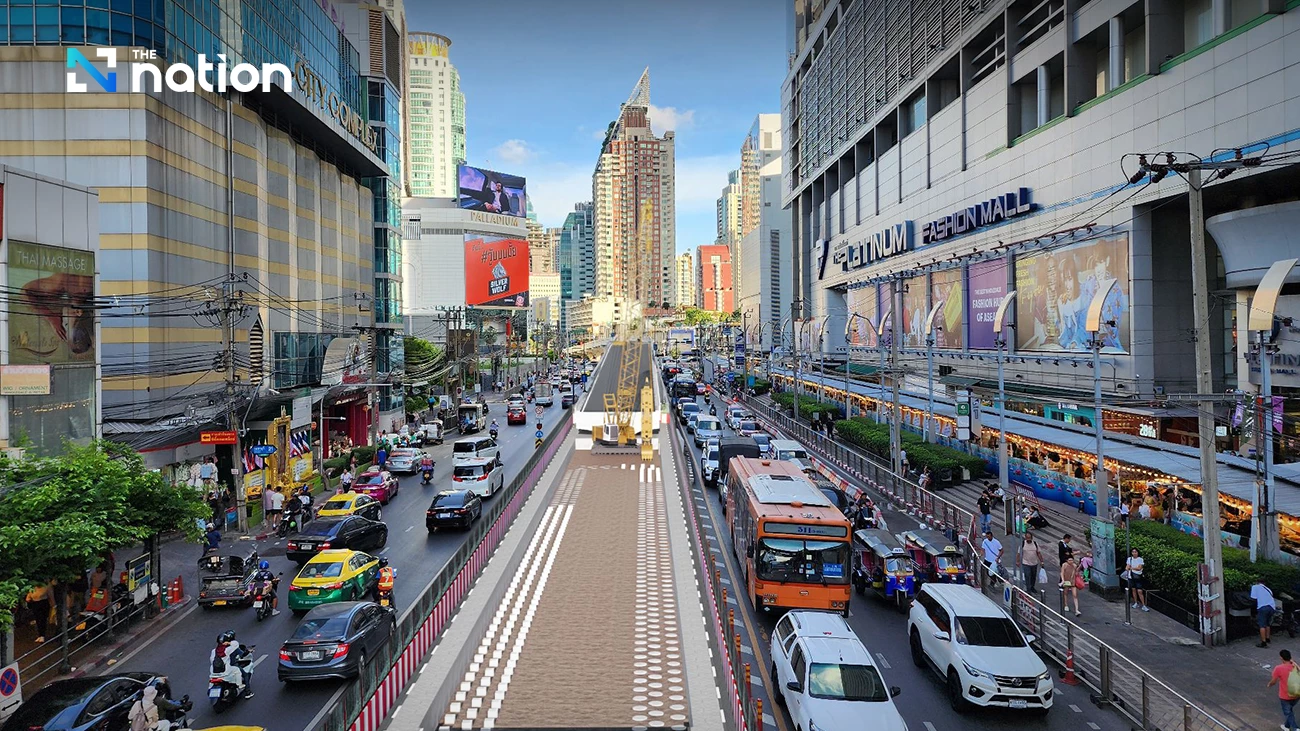 Under the traffic plan, the Pratunam flyover will be closed from 10pm on April 24, 2026, 24 hours a day, until February 11, 2027. During the initial phase, motorists will still be able to pass through the junction only at road level, following traffic lights, with two inbound lanes and three outbound lanes remaining open on Phetchaburi Road.