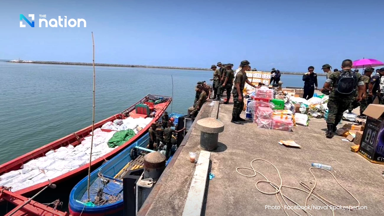 Four Cambodian boats were seized off Trat after allegedly attempting to smuggle Thai goods into Cambodia during a late-night operation, with some crew members jumping into the sea in a failed bid to escape.