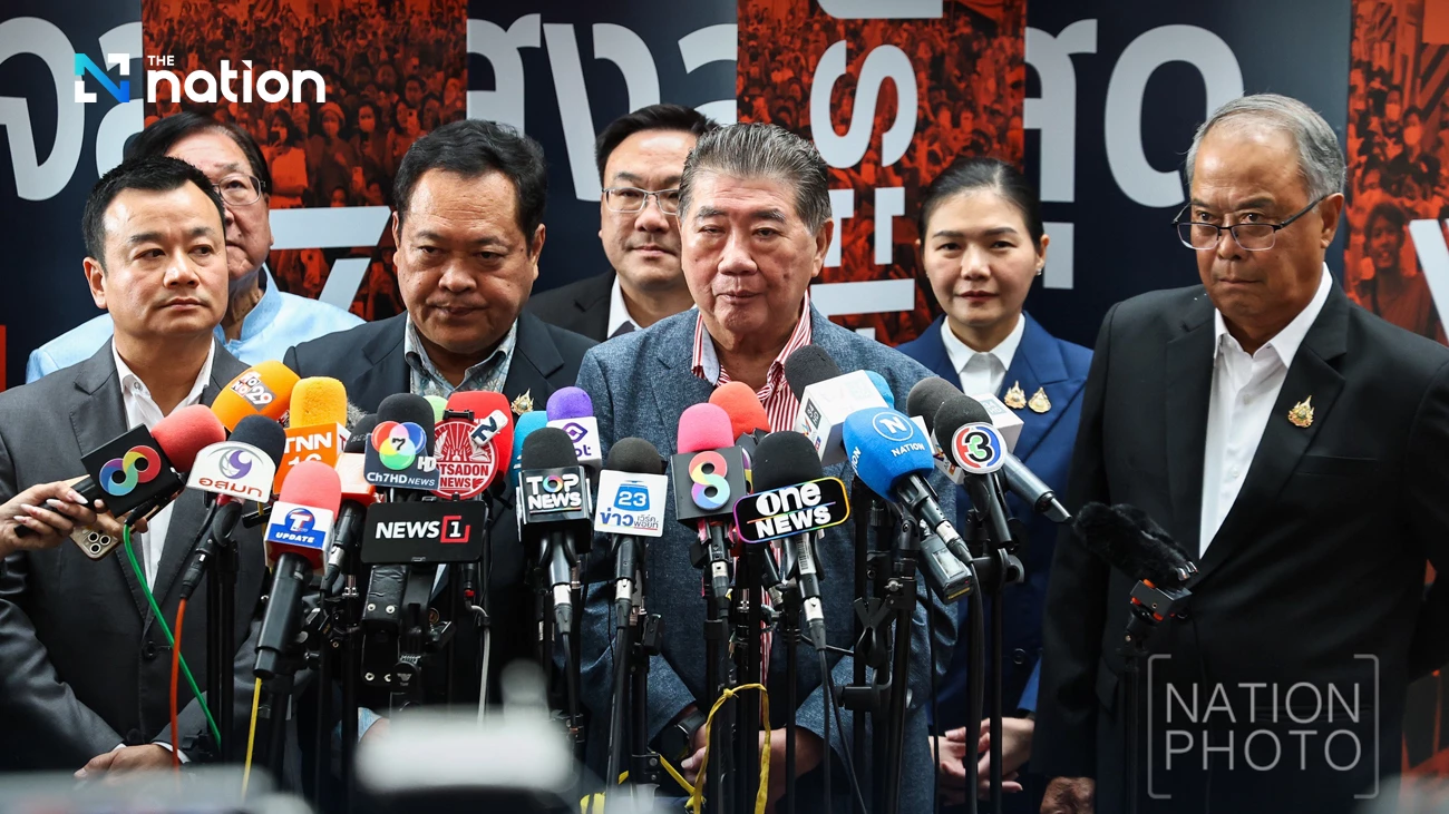 Phumtham, accompanied by leaders of Pheu Thai, the Democrat Party and Prachachart, met at the People’s Party headquarters, calling the current political situation a crisis that demanded joint solutions.