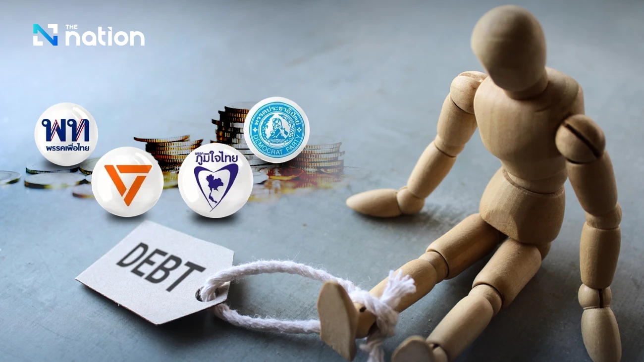 Krungthep Turakij compiled economic policy proposals from four major parties seeking to break down household debt, which stands as high as 86.8% of GDP, through different methods—ranging from clearing credit histories and debt moratoriums to restructuring.