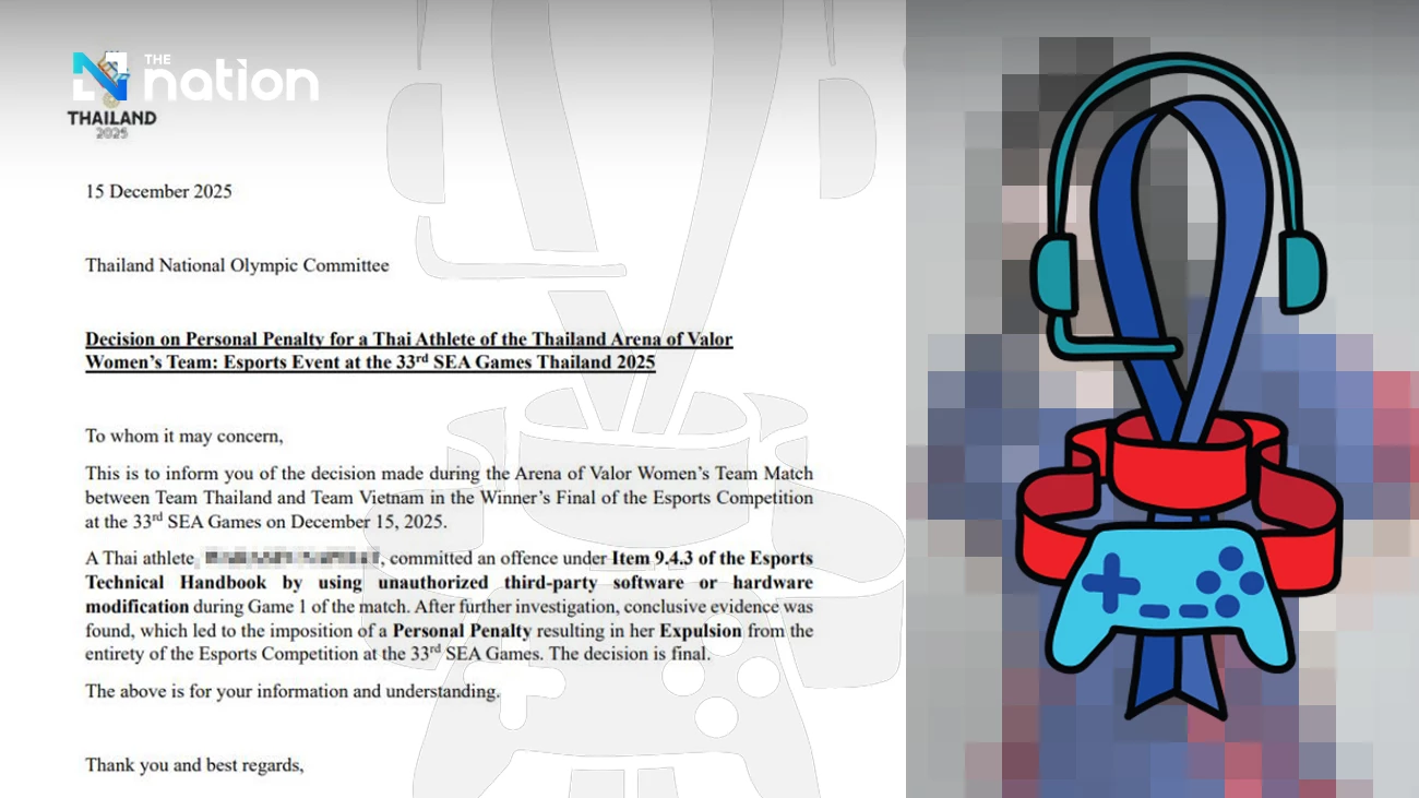 The delegate reported that during the final of the esports competition on December 15, 2025, the Thai player committed an offence under Item 9.4.3 of the Esports Technical Handbook by using unauthorised third-party software or hardware modification in Game 1 of the match.