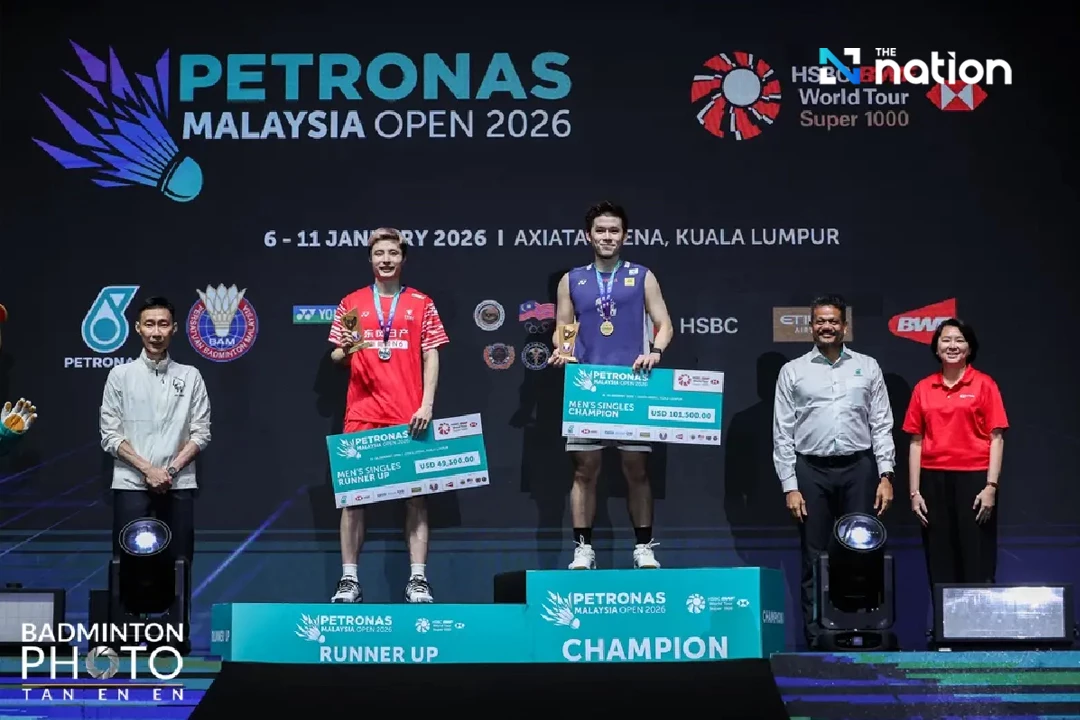 World No.2 Kunlavut edged a gripping opening game 23–21 before taking a 6–1 lead in the second. Shi Yuqi was then forced to retire due to a back injury, handing the Thai star the title and his first championship of the 2026 season.