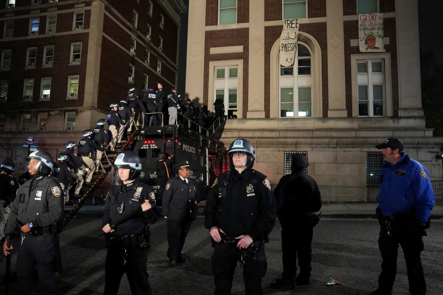 After entering the campus, a contingent of police officers approached Hamilton Hall, the administration building that students began occupying in the morning.
