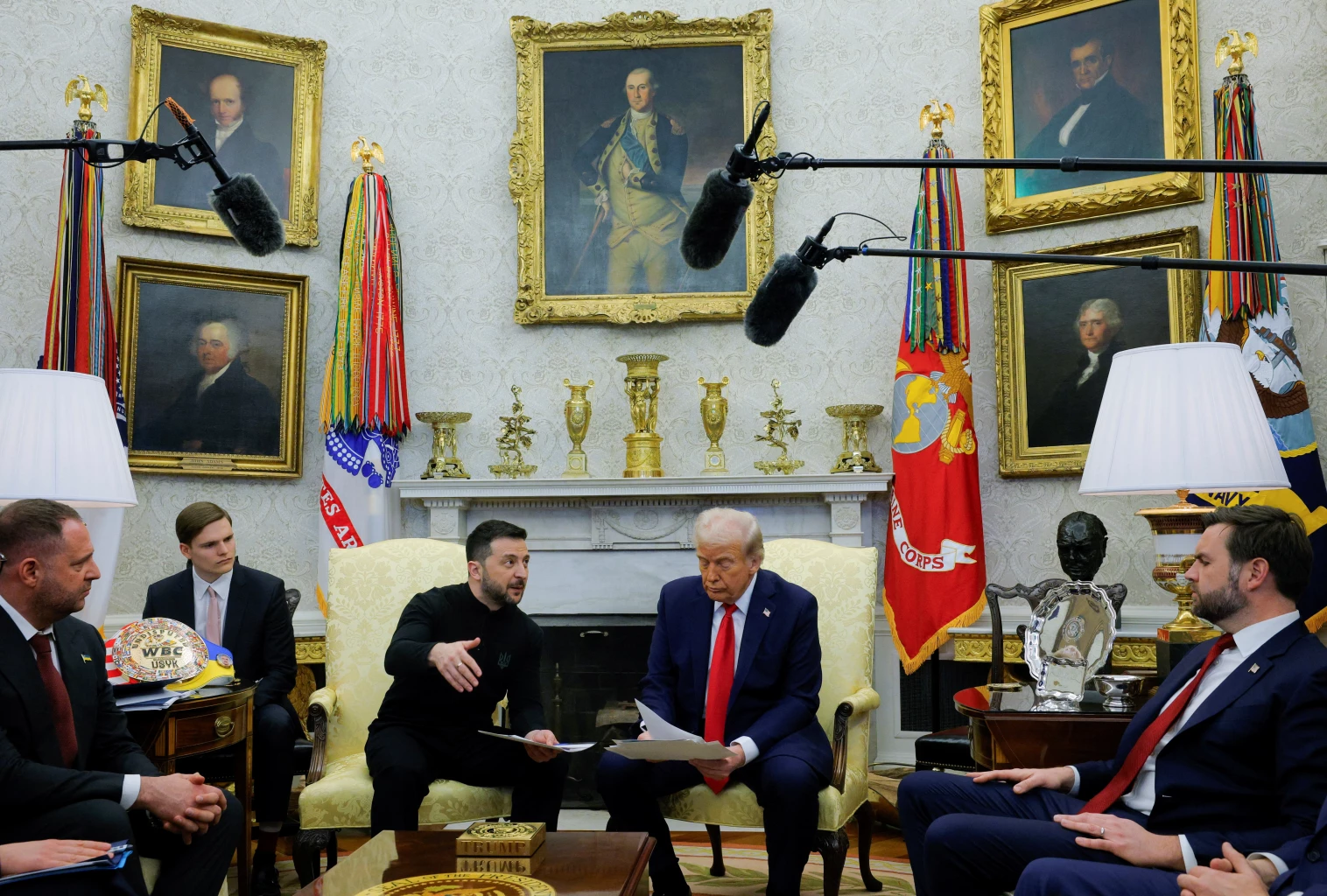 Zelensky openly challenged Trump over his approach toward Russian President Vladimir Putin at the meeting, urging him to "make no compromises with a killer."
