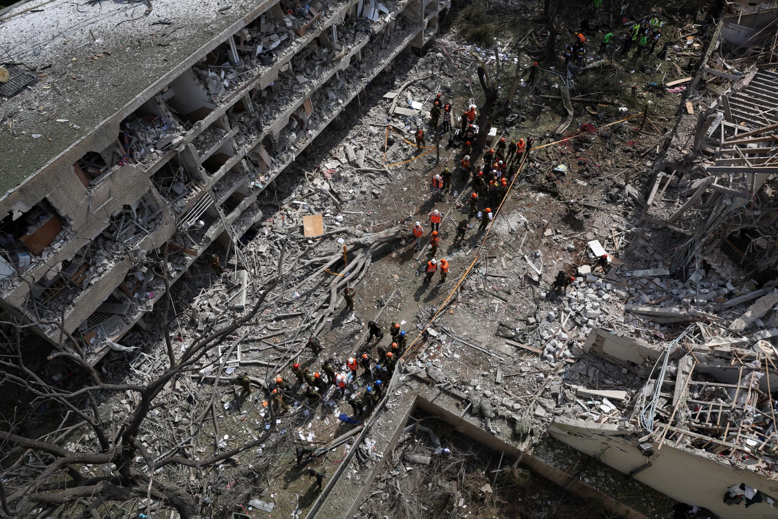 Video from Israel's commercial hub, Tel Aviv and the port city of Haifa, further north, showed rescue teams combing through debris, apartments reduced to rubble, mangled cars along a street filled with debris and medics evacuating injured people from a row of blown out houses.