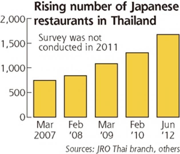 "More Thai people than before have become familiar with Japanese tastes while traveling to Japan or on other occasions, and now they're seeking out authentic Japanese cuisine," said a researcher of the Daiwa Research Institute.