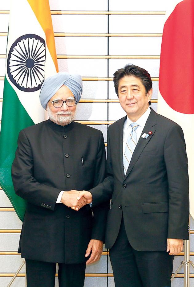In the statement, Abe and Singh said their two countries would regularly hold joint exercises between the Maritime Self-Defence Force and the Indian Navy, as well as begin talks for the export of the MSDF’s US-2 amphibious plane to India.