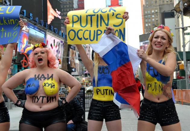 Russian aggression has driven women to exhibit the latest extreme manifestation of a long protest tradition dating back to ancient Greece and the play “Lysistrata”, in which radical gals 2,400 years ago used sex as a weapon for peace. Observe contemporary mass protest movements, and it is noteworthy that women are again leading many of the most effective and jarring campaigns. Whether Ukraine’s Femen or a provocative punk rock band in Russia, women are in the lead squaring off against authoritarianism in bully states.
