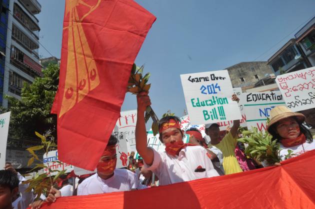 Last month, when the government failed to meet their ultimatum for four-party talks between students, parliament, the government and the National Network for Educational Reform (NNER), students rallied in the second city Mandalay and began marching the 650 kilometres to Yangon. Students and teachers around the country joined in that quest and were supported by local people in every town and city. The government sent university rectors to negotiate with the students and an agreement was reached to hold the four-party meeting on February 1 in Yangon. But after one day of talks, authorities moved the meeting to the capital, Nay Pyi Taw. Next day, the government promptly announced that talks had been postponed until after February 12, and President’s Office Minister U Aung Min questioned whether the student delegation had any mandate to make decisions for the students. Outraged, the delegation gave the signal to recommence the marches to Yangon.