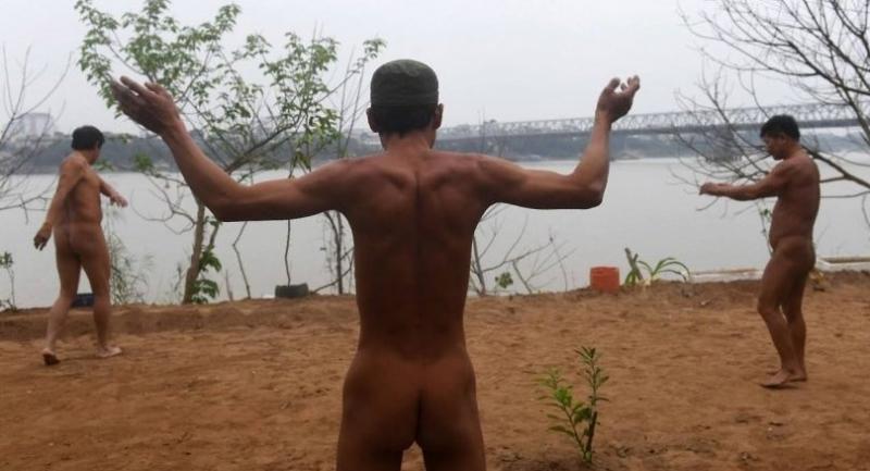 Tucked behind banana trees on the banks of the city’s Red River, the men meet to shed their clothes, and modesty, for a cheeky dip, a game of chess, or yoga headstands in the buff – which they believe comes with health benefits.