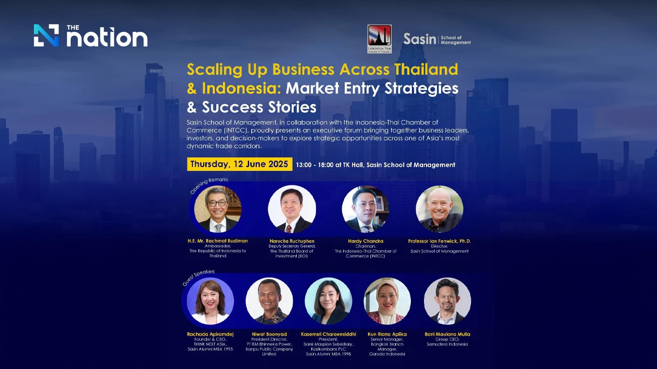 Scheduled for Thursday (June 12) the forum — Scaling Up Business Across Thailand & Indonesia: Market Entry Strategies & Success Stories — will take place at TK Hall, Sasin School of Management, Chulalongkorn University, Bangkok.