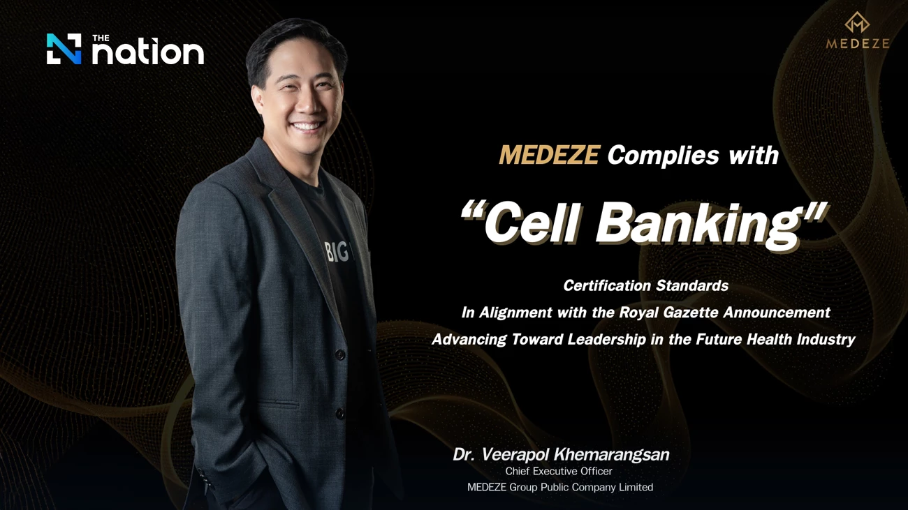 Dr. Veerapol Khemarangsan, Chief Executive Officer of MEDEZE Group Public Company Limited (MEDEZE), stated that the company fully complies with the Cell Banking certification standards in alignment with the Royal Gazette announcement prescribing the criteria and conditions for the certification of Cell Banking standards issued by the Department of Medical Sciences (DMSC). The certification follows the regulation officially published in the Royal Gazette on October 9, 2025, which will come into effect 30 days after publication.
