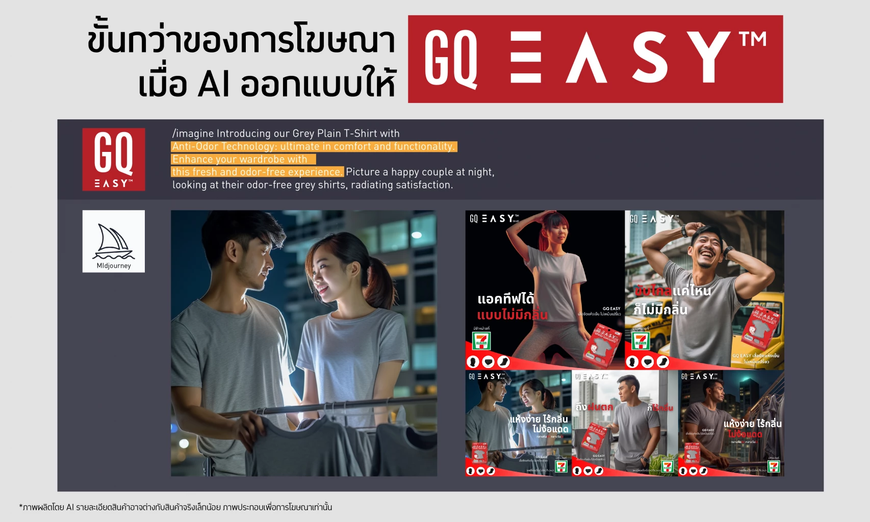 GQ Easy’s latest advertising movie has been created by artificial intelligence (AI) under the concept of “Quick dry, odor-free, no need for sunlight”. It simulates the life of working people who have to do laundry at night and dry their clothes in a limited space on a condo’s balcony. Thailand’s warm and humid weather also contributes to the clothes odor problem among commuters.